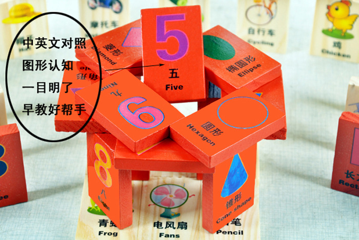 知识多米诺骨牌能让孩子对数字、几何形状有初步的认知;
