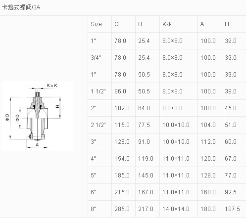 1 采用高精度数控车床精车阀体,保证了蝶阀可靠的互换性,免去了因更换橡胶而不能保证其使用性能的麻烦。 32、阀杆镶装尼龙轴套,减小了磨擦力因而开启灵活轻松。 3、钢件均采用不锈钢制作,橡胶采用食品橡胶,卫生质量高。 4 、阀体通径与管道内径等径,开启时窄而呈流线型的阀板与流体方向一致,流量大而阻力小,无物料积聚。 5 、手柄采用扳动式和拉动式,可承受较大操作力矩,不易扳断。 6、开闭范围为 0~90 度,可固定于每隔 15 度的位置上,具有可调性,且开闭迅速,操作方便。 7、阀体均采用可拆连接,结构简单,维修方便。 8、造型轻巧美观,表面光亮而不粘尘,无毛刺扎手。 9、经过严密的强度和密封试验,保证质量。 10、抽样进行不低于 30000 次的疲劳寿命试验,保证了其使用寿命。