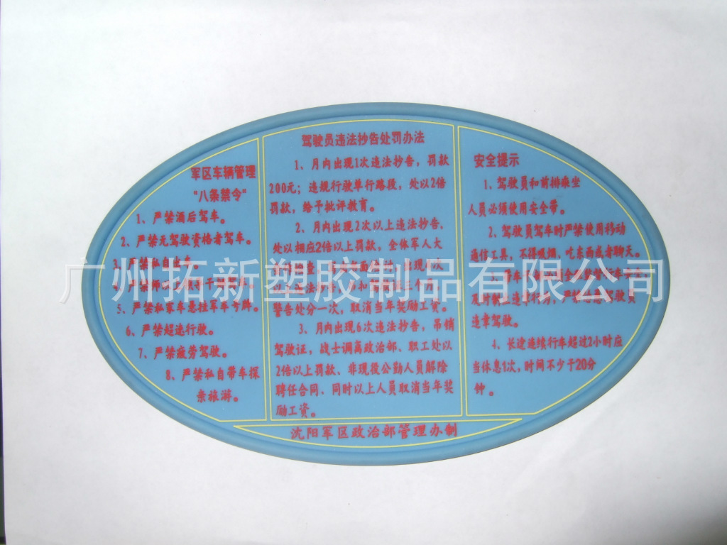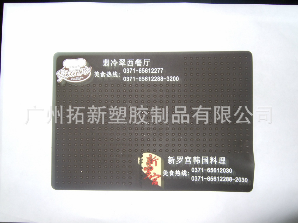汽车防滑垫也称手机防滑垫,也有车载防滑垫。通常是用一种叫PVC软胶的高分子材料做成,底部平坦,因为高分子性吸附能力强,能起到防滑作用。 1.将汽车防滑垫置于汽车仪表台上,不含粘接剂、不反光、不伤仪表台,具超强的吸附力,手机、笔、硬币,眼镜等任何物品放在上面,即使是急刹车或强烈震动也不会滑落。 2.使用环保无异味食品级原材料,产品已经通过SGS检测,属绿色环保产品。经独创配方开发而成的防滑垫,手感柔软,弹性度好;独特的双面防滑设计,防滑效果更出色。 3.突破传统防滑垫对温度依赖高的技术难关,在高低温下不易变形,在-25℃-120℃可以正常使用。 4.可直接用水清洗,祛除防滑垫上的灰尘,可反复使用。 5.采用最新点胶工艺,图案永不褪色,不掉落,立体感强,造型根据客人的要求量身订制,可提供免费设计,我公司已经开发生产超过1000款汽车防滑垫,品质顶级优良。 6.防滑垫上可添加公司LOGO和宣传语,是宣传公司品牌及产品的最佳促销礼品,广泛应用于汽车用品,促销礼品,广告宣传等行业这些防滑垫可以放在您的汽车里或办公桌上以及家居客厅卧室的桌子上等,既实用又美观还起到装饰效果