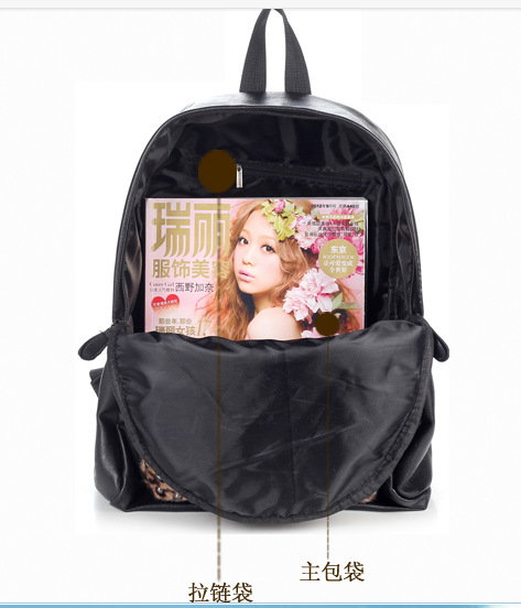 批发新款双肩包女韩版潮学院风 豹纹铆钉复古学生书包电脑包