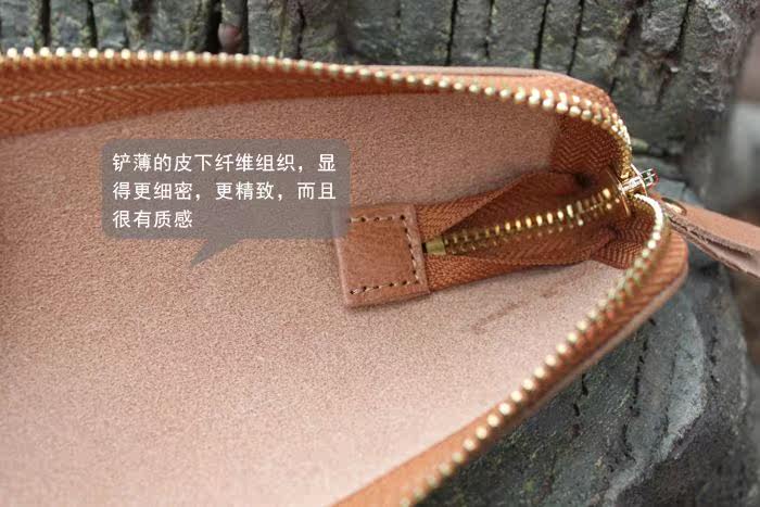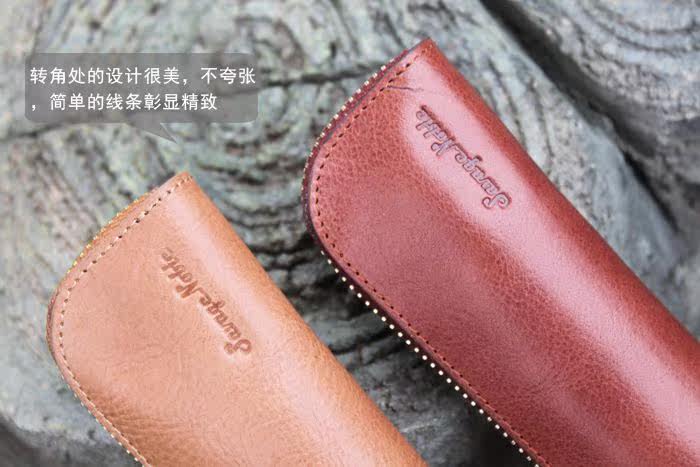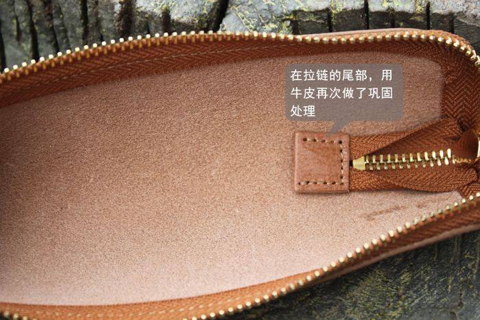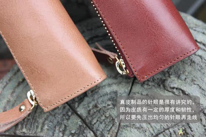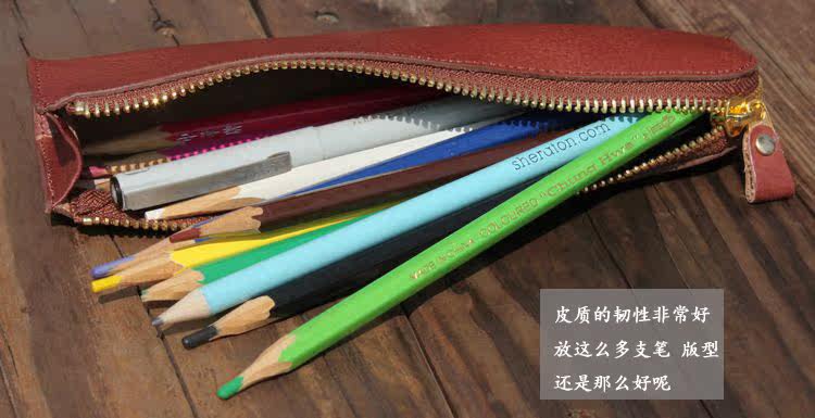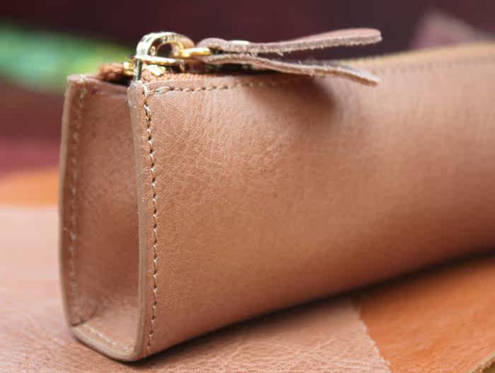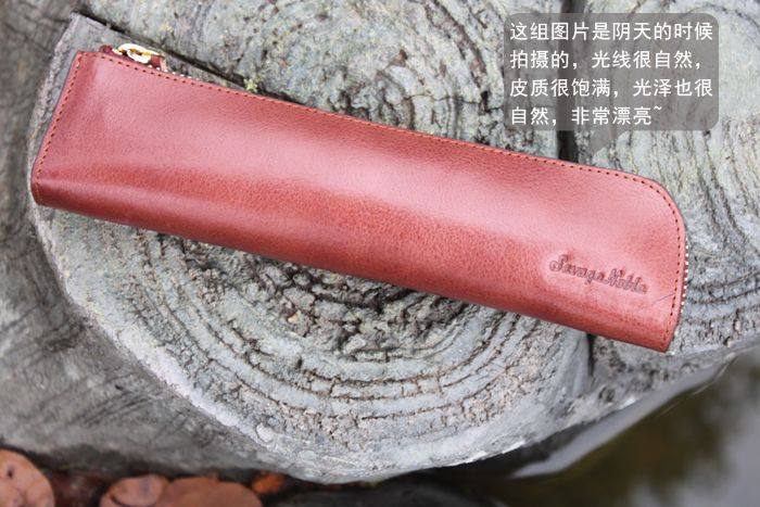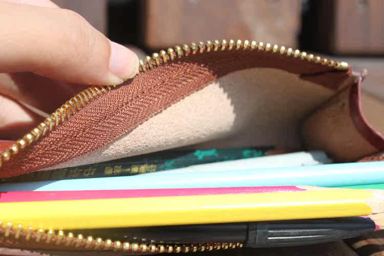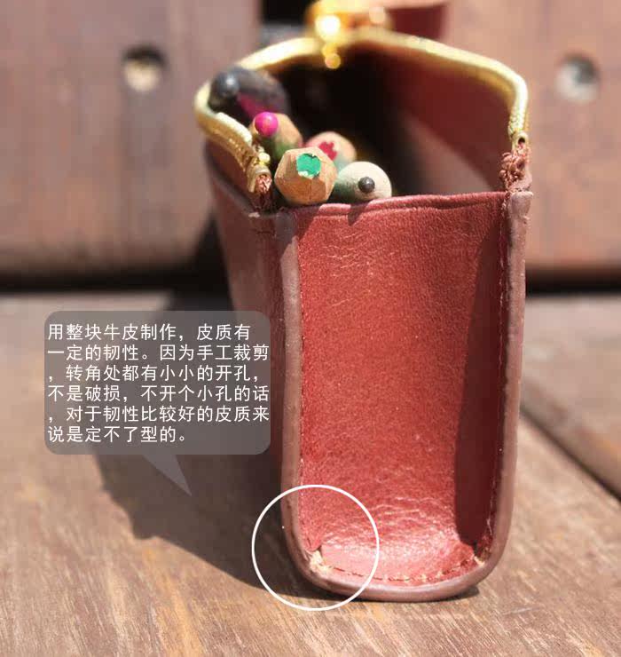 上图:笔袋转角处只是在外面把多余的皮去掉了,不是挖了个洞啊,所以整款笔袋还是很严实的,一根针都掉不出来,(*^__^*) 嘻嘻……