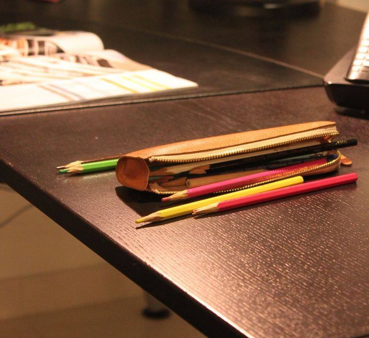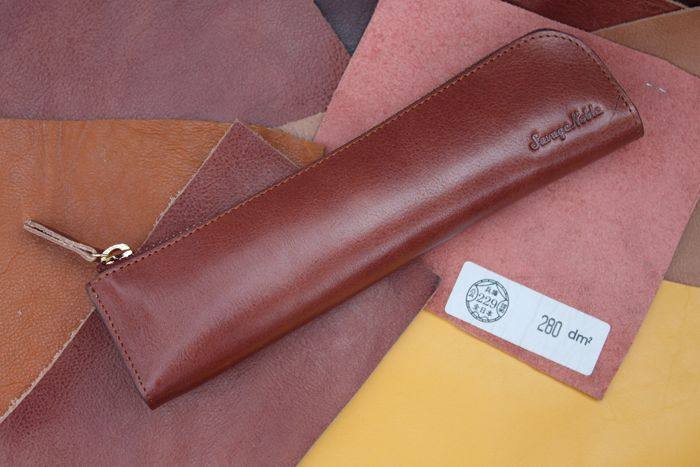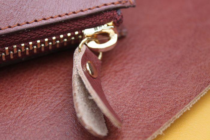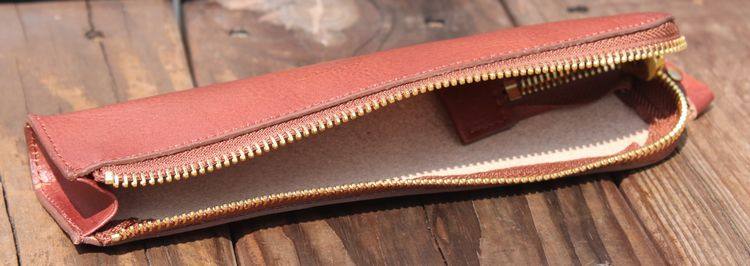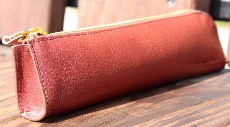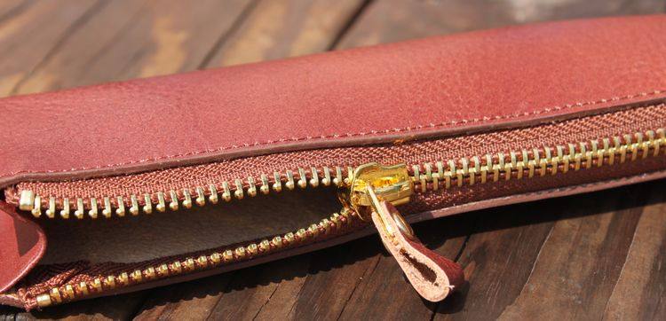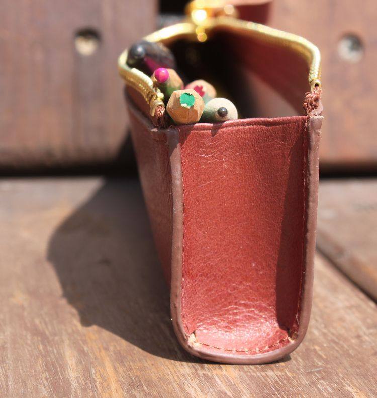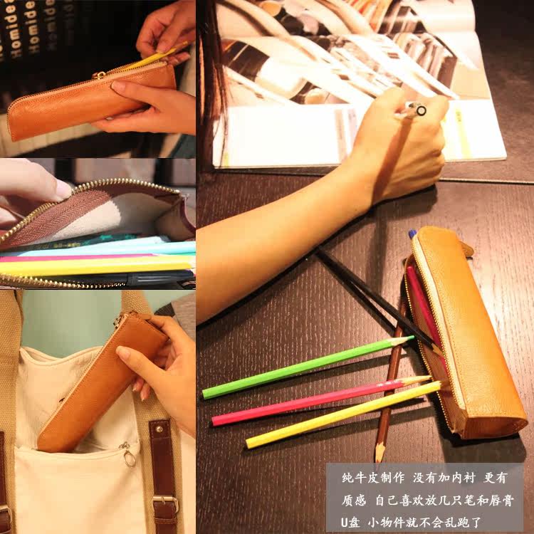 上图:笔袋转角处只是在外面把多余的皮去掉了,不是挖了个洞啊,所以整款笔袋还是很严实的,一根针都掉不出来,(*^__^*) 嘻嘻……