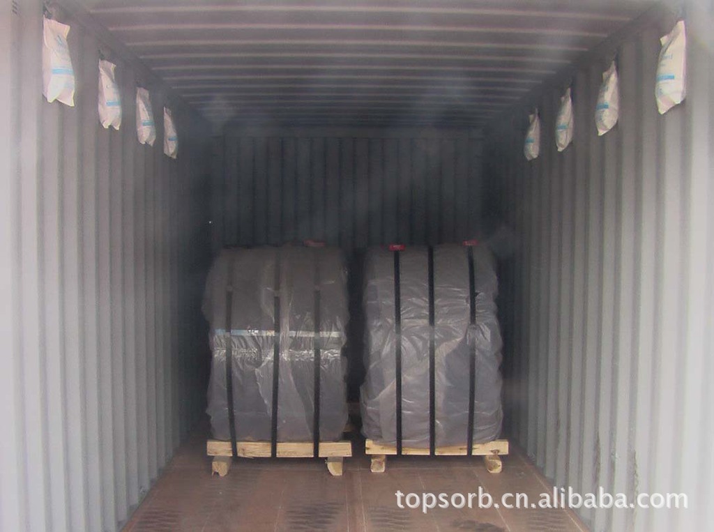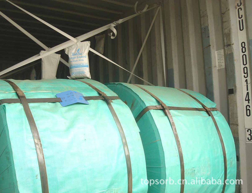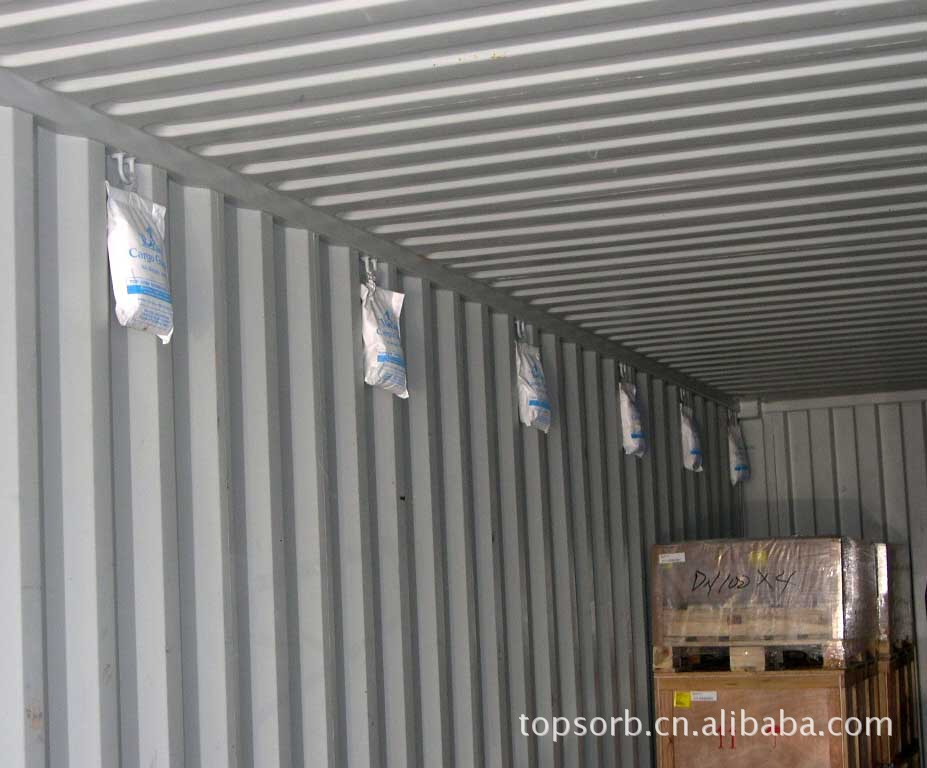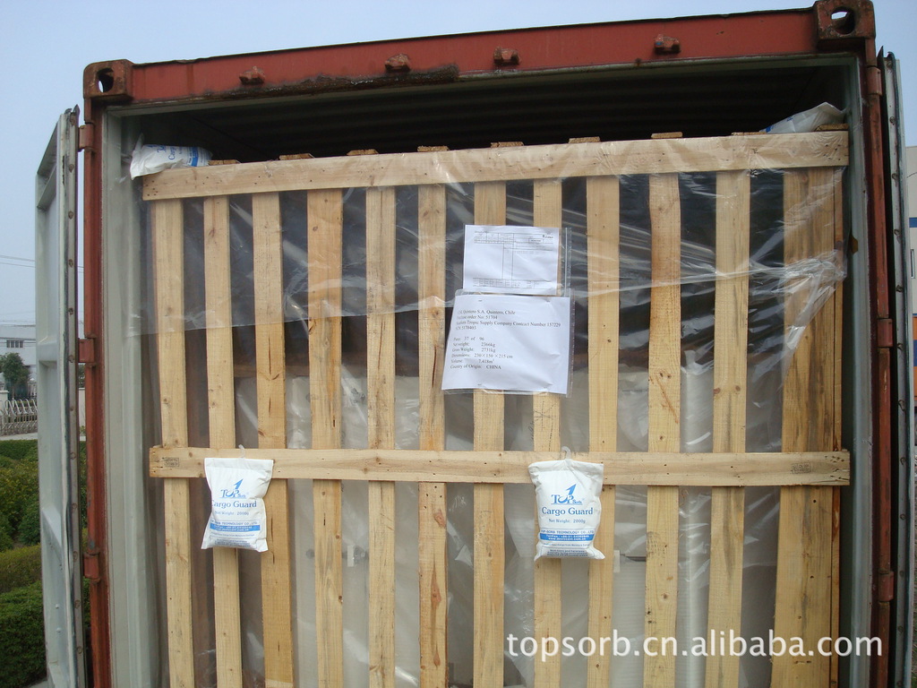 Cargo Guard-2000:吸湿袋, 挂钩式设计,2000克,可悬挂在集装箱壁的圆环上, 是集装箱雨的强力克星。 吸湿基材: 活性矿物;挂钩式设计,2000克,可悬挂在集装箱壁的圆环上, 是集装箱雨的强力克星。 经国际权威检测机构CETEA,Packing Technology Section检测,Cargo Guard-2000可持续吸湿60天,吸湿率高达75%,能持续降低相对湿度, 有效降低露点,全航程保护货物! Cargo Guard-2000自推出以来, 因其吸湿效果显著, 性价比卓越, 设计美观, 操作简便等优点, 受到客户的广泛追捧, 国内国际市场反应热烈, 已俨然成为TOP-SORB的明星产品.该产品设计和性能均获得数家国际干燥剂品牌的高度认可,并长期代工贴牌生产大规模出口。 强烈建议你试用Cargo Guard-2000!