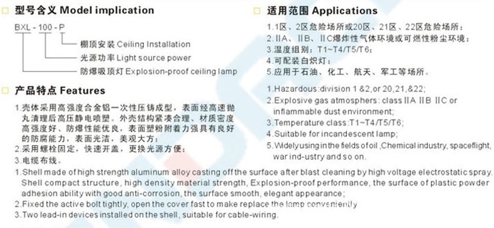 BXL-100系列防爆吸顶灯(ⅡB、ⅡC、e)