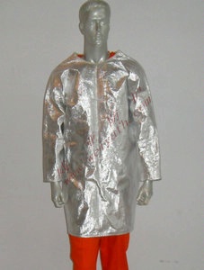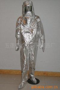 耐高温服装包括隔热头罩、隔热上衣、隔热裤、隔热手套以及隔热护脚五件套。耐高温服装面料采用聚丙烯睛化纤维织物与铝箔复成复合物,不含石棉。与国内同类耐高温服装相比具有比重轻、耐高温、隔热、防火、强度高、耐磨、耐折、柔软以及对人体无毒无害等优点。在灭火作业时耐高温服装能有效地保障消防员的人身安全。耐高温服装的款式可分为分体普通式、分体可背呼吸器式两种。耐高温服装中的隔热手套可根据需要配备并指式,三指式,五指式耐高温手套耐高温服装中的隔热护脚可根据需要配备 隔热鞋。