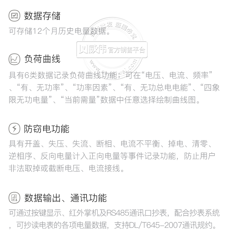 2、具有强大的防窃电功能,能够有效避免因窃电现象给供电方带来的损失。