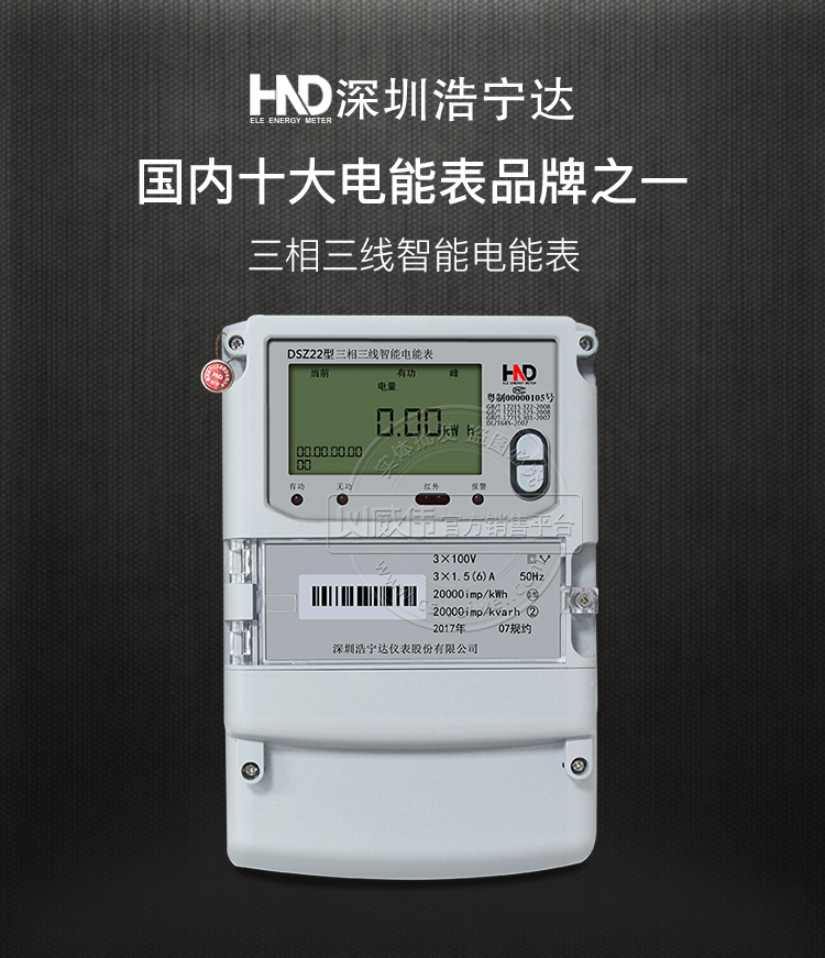 产品名称:浩宁达DSZ22精度0.5S级3*100V 3*1.5(6)A三相三线智能电表