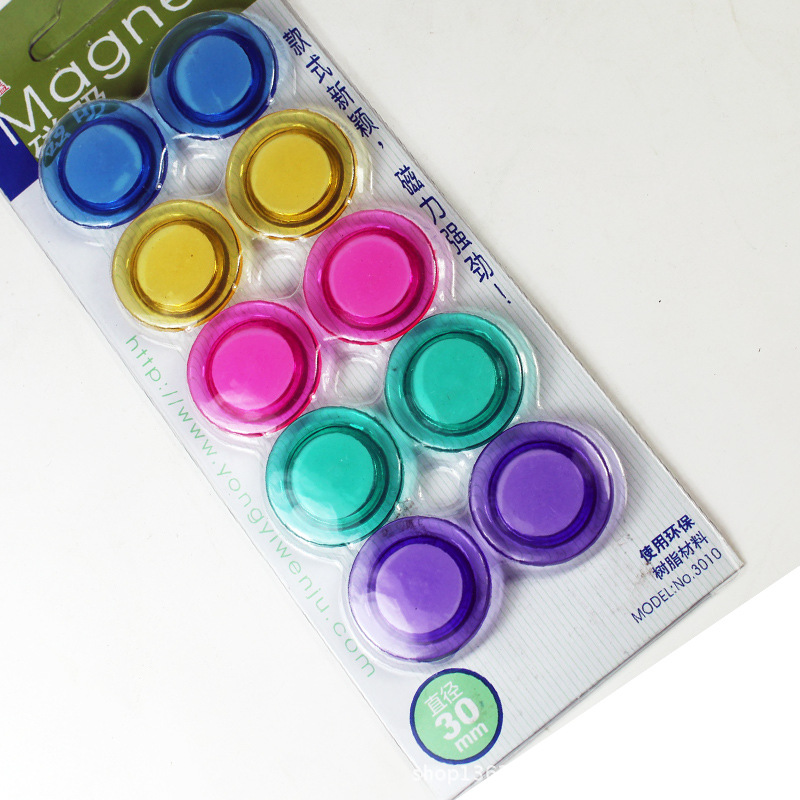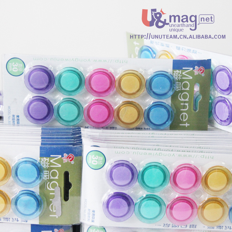本款磁扣采用亚克力和强力磁铁制成,主要应用与教学文具行业,用于吸附软白板做为标记非常方便,配合磁性白板,软白板既可以做教学作用,也可以作为足球,篮球运动的战术模板演示作用,可谓一物多用!!