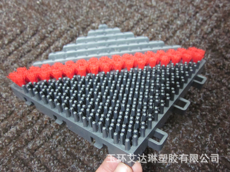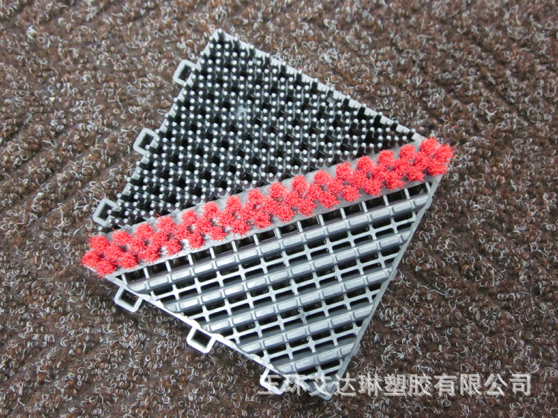 产品介绍:A型系列地垫也可以称为三合一地垫,一种兼具草尖,铲刀,尼龙刷三种除尘,防滑结构功能的地垫,常用于门厅之外,起到刮除行人鞋底泥沙,并且止滑的效果,该产品为模块设计,组合使用,无限拼块,不受预留井位限制,可以自由铺设,较易安装及拆卸局部损坏亦可更换,具有灵活的使用功能与经济实用的特点。
