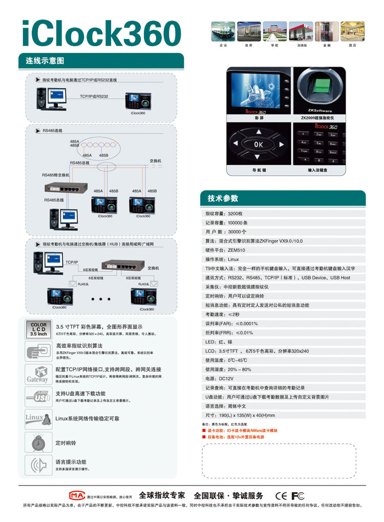 采用ZKFinger VX9.0版本混合引擎识别算法,高效可靠,系统识别率业界领先。