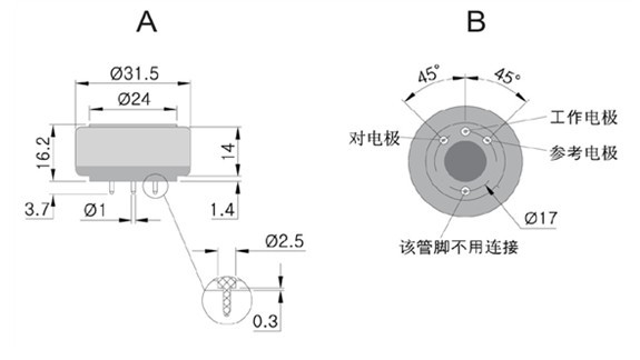 原理 | 三电极电化学传感器 |