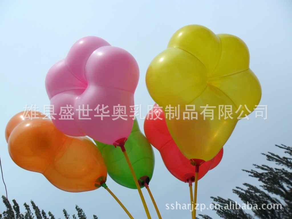 异型梅花气球: 梅花型气球为异型气球,为吹起是为五个圆形组成,中间有一个圆形的缝隙,吹起是为五瓣花形状,非常漂亮。