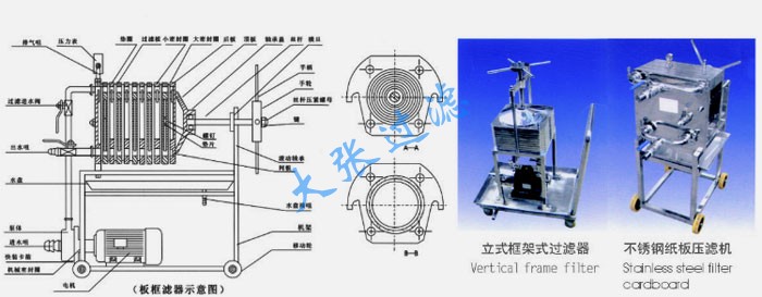 本机均采用SUS304或SUS316L优质不锈钢材质制造,耐腐蚀经久耐用。滤板采用螺纹状结构,可根据不通过滤介质和生产工艺(初滤、半精滤、精滤)需要更换不同的滤材(直接选用微孔滤膜能达到无菌过滤目的)。用户还可根据过滤量的大小,相应减少或增加层数使之适合生产需要。同时生产滤布无渗漏板框过滤器。本机工作时加压密封过滤,液料无损耗,液体澄清度好,还可根据用户需要特制多级过滤装置,一级放较粗滤材,二级放较细的滤材,即节省时间又提高过滤精度。本机所有密封部件采用硅橡胶密封圈,耐高温,无毒,无渗漏,密封性好。本机还可根据用户需要特制自动回流装置,当泵停止转动后,打开回流阀,所有沉积物自动排出(兼有排气功能),同时用清水从回流管进行反冲,极为方便。