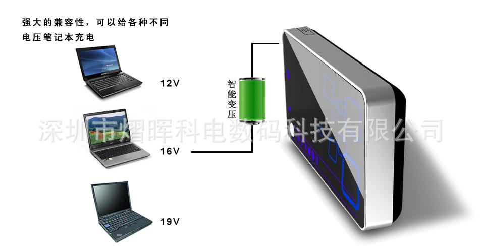 电池:锂离子电池 周期:500次 额定输入:12V16V/19V 1A的 额定输出:DC12V16V/19V 3.8A,5V外接USB 500mA的 容量:13,200 mAh@3.7V(48.84Wh) 尺寸:158 * 85 * 27毫米 温度范围:-10℃?55℃ 充电时间:7小时 重量:385克