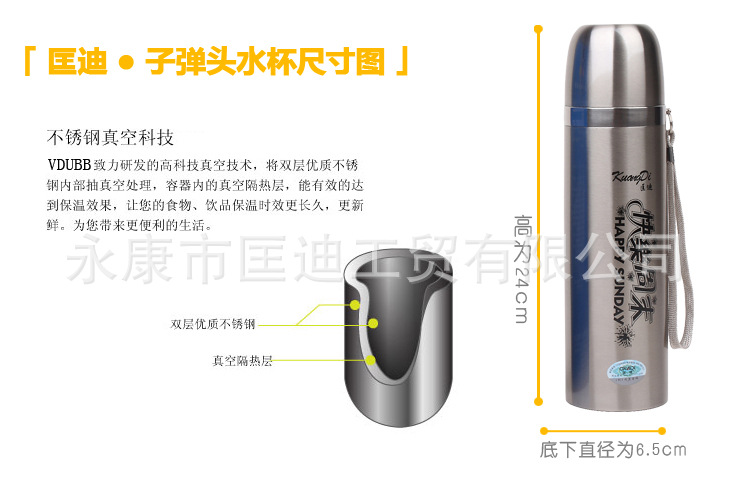 永康市匡迪工贸有限公司是一家专业从事不锈钢保温杯壶的制造型企业,是目前国内最大的保温杯生产基地之一。公司设有下属四个分厂,占地面积6000平方米,具备3万只的日生产能力和1000万只的年生产能力。
