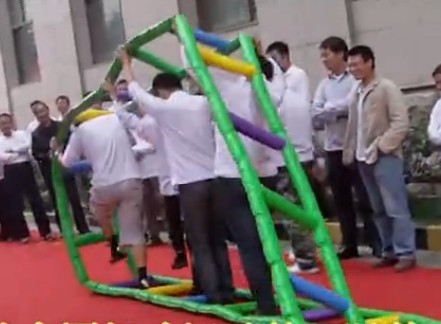 比赛方法:每队派出一名代表,钻进球内,相互碰撞,出界者淘汰,去界内的三名获得争夺前三名资格。