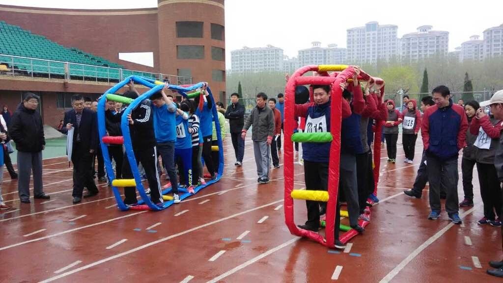 趣味运动器材包括:充气毛毛虫,超级充气障碍赛(充气跨栏,网钻通道,鱼跃龙门,平衡木),陆地龙舟,袋鼠服,众星捧月,快乐铅笔,大脚竞走,快乐大脚,超级相扑,脚踏实地,财源滚滚,动感五环,扭转乾坤,人桥接力,同舟共济,流水作业,百发百中,协力竞走,齐心协力等