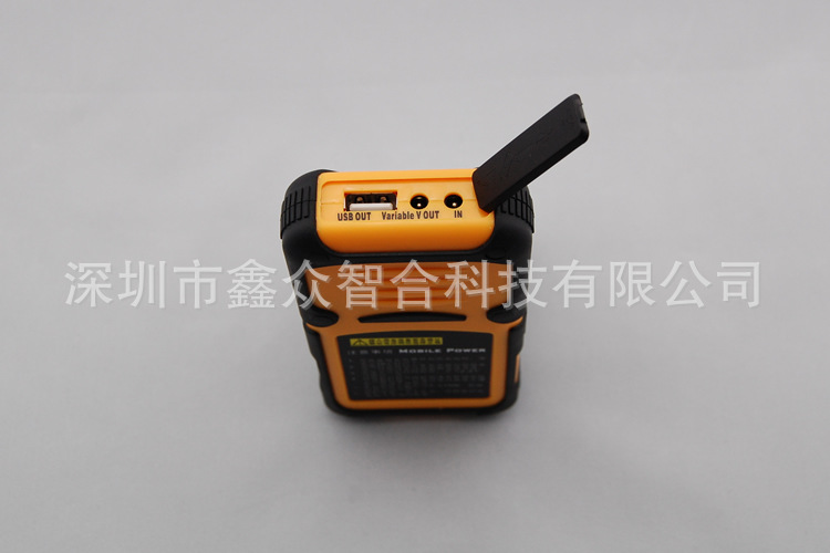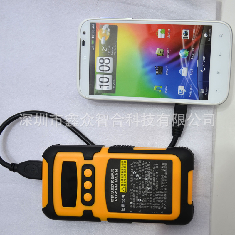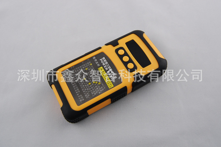 1.颜色:黄黑2.外观尺寸:130*65*25(mm)包装:吸塑 192*128*33(mm)3.外观工艺:ABS 硅胶4.容量:6600mAh5.重量:210克(带包装292克)6.电芯:18650锂电电芯(三节)7.输入:DC 5.0V±0.5V/1.5A8.输出电压:4.2V、5.1V、6V、7.4V、8.4V、9V可选9.输出电流:2A10.保护功能:短路、过流、过充、过放、欠压保护11.包装清单:产品*1/转接线*2/转接头一套4个/充电转接头1个(PSP DC3.5)12.应用产品:手机,游戏机,MP3,MP4,MP5,PSP等数码产品13.防水,防摔,防尘