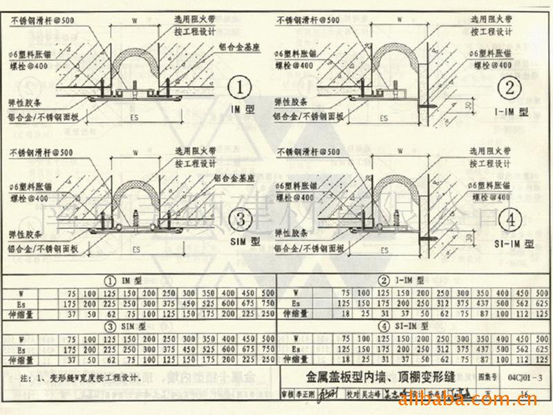 2.4、抗震型:变形量大,接缝平整,隐蔽性好。适用缝宽为50-500mm。可用于有抗震设防要求的地区及有较高 变形的部位