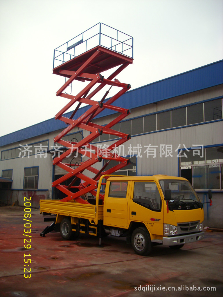 车载式升降平台是为提高升降平台的机动性,将升降平台固定在电瓶搬运车或货车上,它接取汽车引擎动力,实现车载式升降平台的升降功能。以适应厂区内外的高空作业。广泛应用于宾馆、大厦、机场、车站、体育场、车间、仓库等场所的高空作业;也可作为临时性
