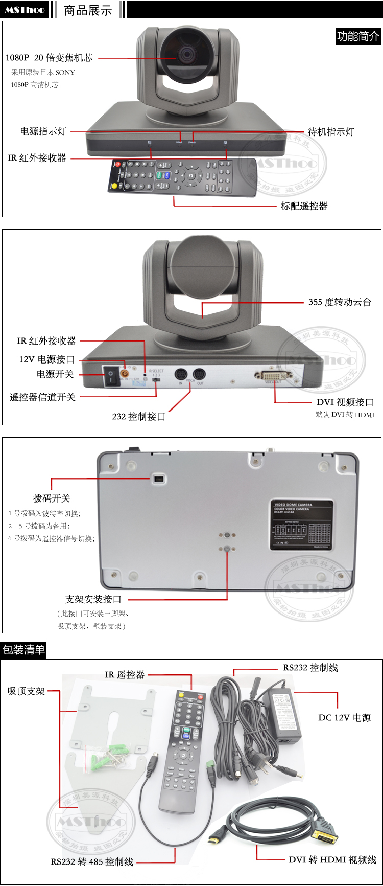 MST-HD380 采用全新日本原装SONY200万像素20倍光学变焦高清机芯,图像还原度高,视角更宽广(可达120°视角);真正1080P优质图像(1920*1080分辨率 60帧/秒);