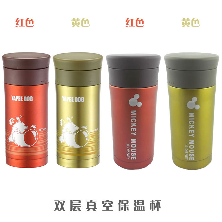 2.激光打标—在杯身的不锈钢部位用激光腐蚀出图案和文字,颜色单一,图案和文字不会被磨损,主要适用于不锈钢杯等材质杯体。