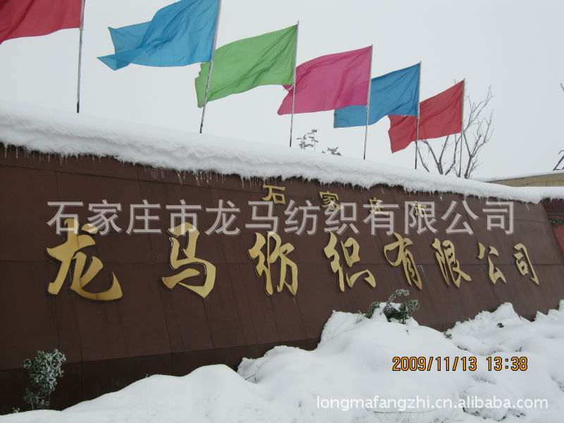 石家庄市龙马纺织有限公司,成立15年,是一家综合纺织企业。有纱厂,浆纱厂,织布厂,印染厂。有自己的门市和对外销售的窗口,做内外贸销售,在业界有较高的声誉。