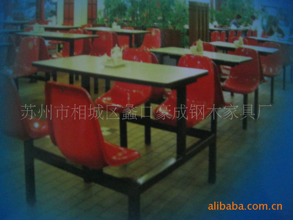 50X50方钢管,厚度1.2mm,玻璃钢座面。防火板台面。适合食堂,餐厅等。