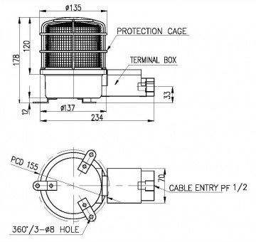 - 材质:灯罩-PC,身体-DIECAST Al,保护网-SUS316L