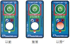品暴露于阈值以下的温度,白色的大窗口变红色或部分红色,TempDot™Minus标签 提供即时的视觉指示。为