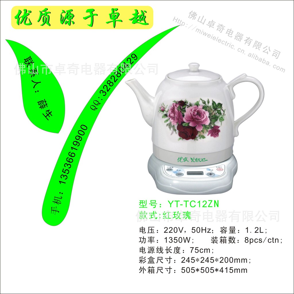 1、优美的流线型环保景德镇陶瓷外观,精致典雅、豪华大方,彰显高贵品质、凸显你的人格魅力。 2、隐藏式不锈钢发热盘,烧水无异味,无毒卫生,清洁简单便捷。 3、方便快捷,煮沸一壶水只需4-6分钟,100%沸腾。 4、采用名优温控器,水蒸气感应控制,水开后自动断电,防干烧自动断电保护功能。 5、360度旋转电源连接底盘,任意摆放,灵活自如。 6、经典手绘花纹独具匠心,经多重高温炼制,极具浪漫生活情调。 底 座 1、造型简洁实用,功能齐全。 2、可让水壶360度任意放置旋转,同时接触良好。 |
