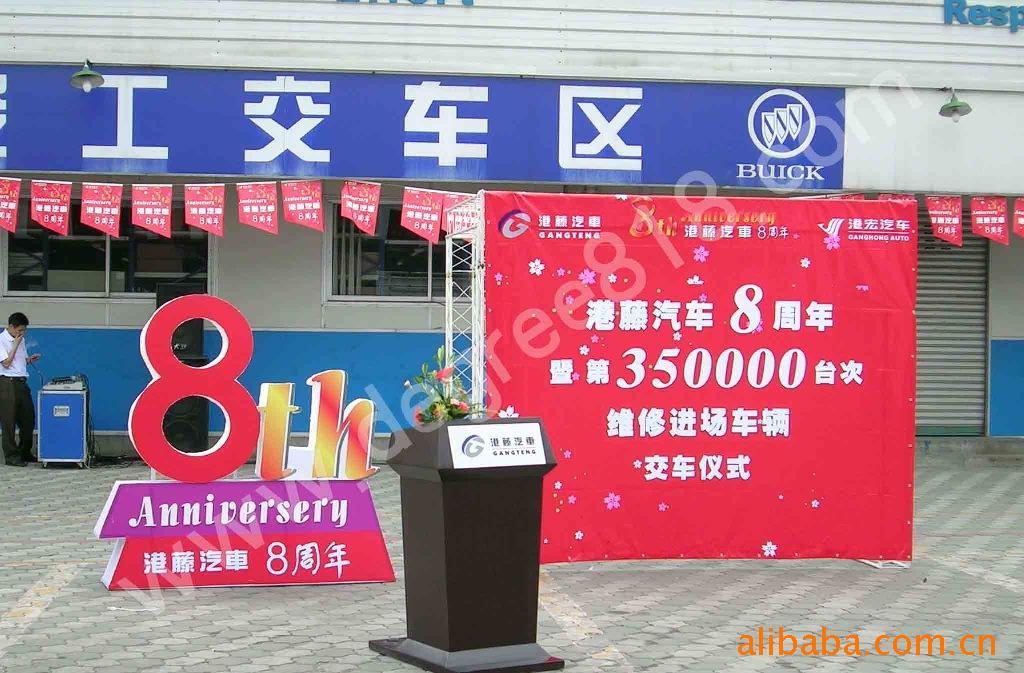 5. 展览展示器材销售(现货批发折叠固定桁架、易拉架、促销台、X展架、资料架、促销帐篷、广告伞、促销折叠桌椅、铝合金挂画条、注水旗杆等)