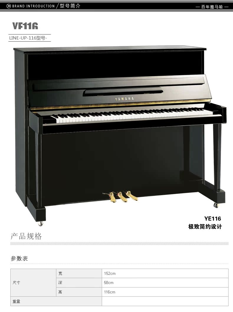 雅马哈乐器 雅马哈钢琴 YE116 立式钢琴 全新正品 旗舰店品质