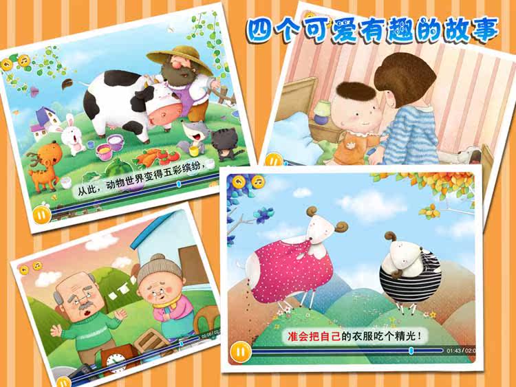2、共4个故事,每个故事都有丰富的动画,KTV字幕,并由动画配音演员生动演绎。