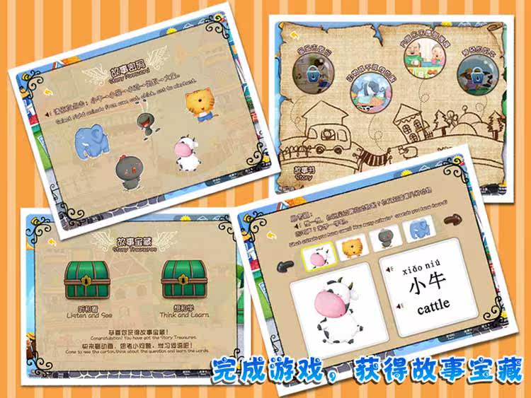 •本应用包含4个故事、4个游戏、5首儿歌欣赏,更有多种奇趣互动点击。采用“触发互动事件——找出并完成游戏——解锁故事和学习图卡”的互动学习模式,让孩子在愉快地探索中,发挥想象力,动手动脑,获得最好的学习和游戏体验。