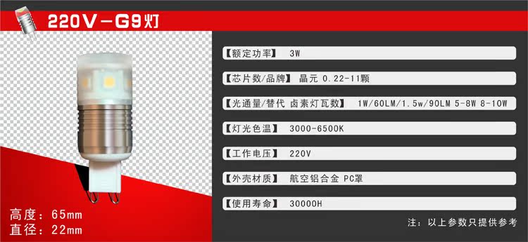 LEDG4 220V G9 水晶灯 3W G4灯珠 节能 led G4灯珠 g9 led g4 灯