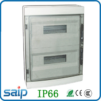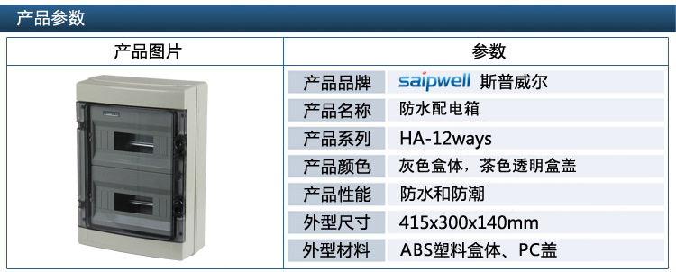 1.适用于户外,防水IP66,有效的保护断路器,空气开关等电路设备,防止雨水和湿气损坏电气。 2、面板为工程ABS材料,强度高,永不变色,透明材料为PC。 3、盖按压式开闭配电箱面盖采用按压式开闭方式,只需轻按即可开启面罩,揭开时有自锁定位的合页结构。 4、配电箱装线设计可将导轨支撑板升到活动的最高点,安装导线时不再受狭窄空间限制,令安装容易配电箱开关设有线槽、线管出孔,易于使用各种线槽、线管。 ◆型号:HA-24ways; ◆外型尺寸:415*300*140