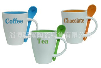 特性:高温白瓷瓷质坚硬细腻,抗冷热冲击能力强不易破损;彩色陶瓷颜色鲜艳漂亮,可根据客人要求调制颜色;独特的浮雕加叉勺造型个性且时尚;如加印LOGO更为凸显得到年轻人及企业客户的亲睐,是时下时尚家居的流行款式。