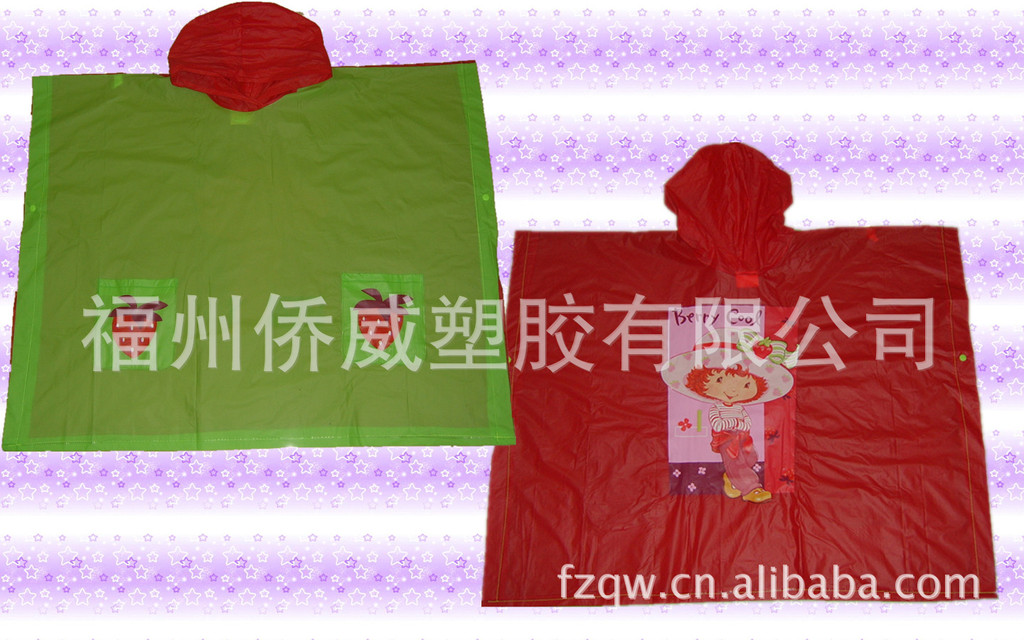供应可爱草莓女孩PVC卡通雨披斗篷