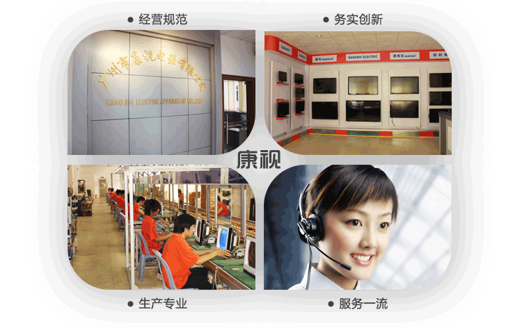 关于我们 我公司(广州市康视电器有限公司)是八年诚信通用户,以诚为本,以质为根,所有液晶电视/显示器等都通过国家3C认证,符合行业标准,旗下品牌“康视宝”更是阿里巴巴官方认证的优质品牌,是阿里最受欢迎的家电品牌之一。(点击这里查看康视宝品牌阿里官方认证页面)