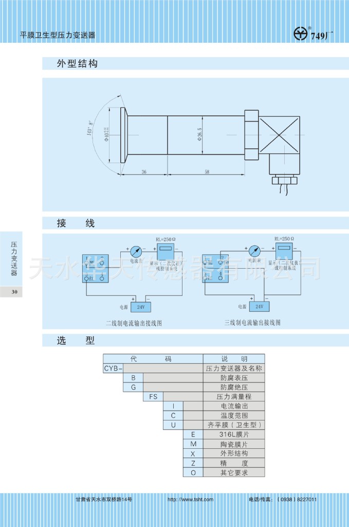 平膜卫生型压力变送器(CYB-16系列)