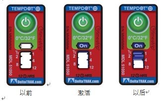 TempDot™ Plus温度标签需存储在室温下,并且必须在反应温度以上被激活。激活是通过用手指推压,ON的字