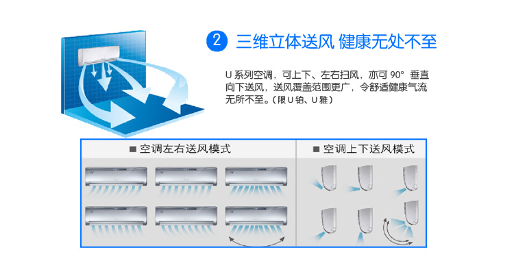 4.健康;U铂独有静音换气技术 独享健康 1.空气质量对睡眠影响:人在睡眠时会新陈代谢,需要充分的氧气,U铂换气技术会让您呼出的二氧化碳量减少氧气的含量增加,舒适健康。 2.静音换气清新空气:格力静音换气装置从风道和电机等方面进行优化设计,采用直流电机,真正实现新鲜空气宁静享受。 |  |