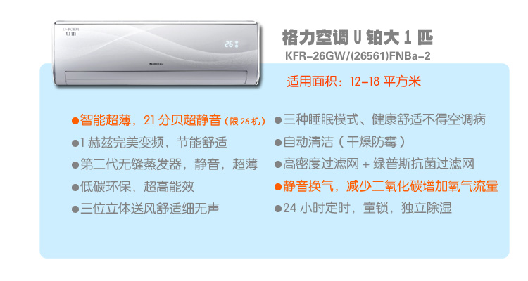 1.静音;格力第二代无缝蒸发器,超薄超静音 |