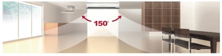 ![]() | MoveEye在150°范围内对房间地面温度进行探测,根据所感应到的温度即体感温度进行气流控制,避免了房间过冷的问题,既舒适又省电。 |