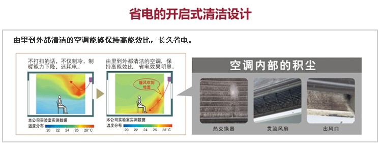 传统空调制冷时,由于冷气流沉积在地面附近,空调进风口温度比地面温度高,空调仍以高功率制冷运转,容易造成冷气流大量沉淀。有了MoveEye,能主动监测房间的地面温度,即时以超强、超宽气流送风消除温差,使人体足部感觉不会过冷,舒适又健康 | 传统空调制暖时,由于热气流上浮在天花板附近,当进风温度接近遥控器的设定温度时,空调就会降低转速减少风量。有了MoveEye,能主动监测房间地面温度分布,即时以超强、超宽气流送风消除温差,使人体感觉暖和又舒适。 |