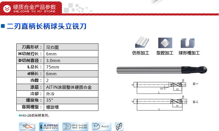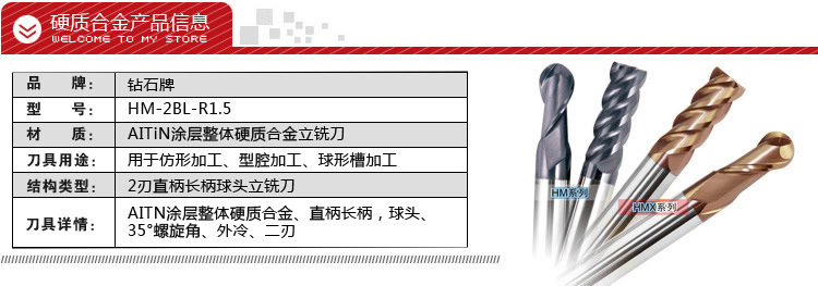厂家促销钻石牌硬质合金立铣刀 二刃直柄球头立铣刀通用加工系列