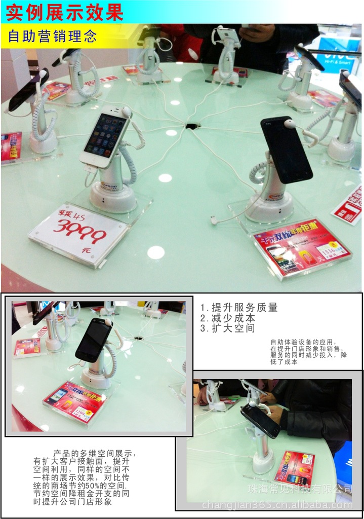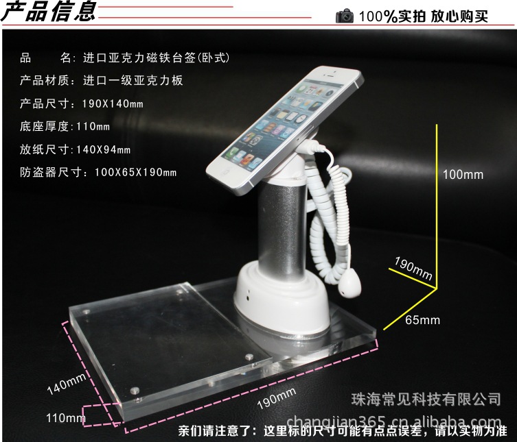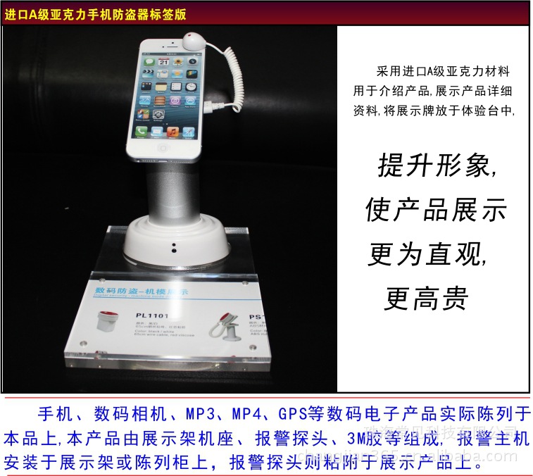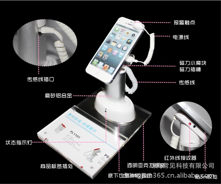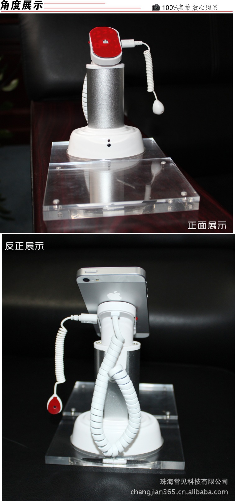 功能描述:1、断线报警,即剪断连接展机的任意连线报警。2、传感器报警,即强行摘下展机背面的传感器报警。3、充电断开报警,即拔出展机的充电接口报警。4、充电功能,为展机提供电源,并为展机电池充电。5、管理功能,可设置充电时间间隔,充分保护展机的电池寿命。可选配件:遥控器、电源适配器、黏贴底座、底座备用胶贴、老鼠头保护器、老鼠头保护器备用胶贴