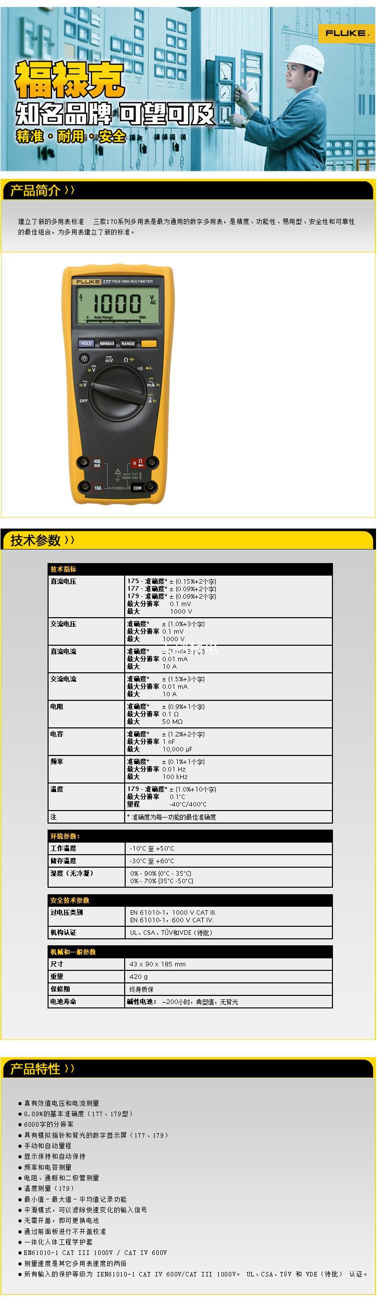 福禄克旗舰店 FLUKE F177新型数字万用表