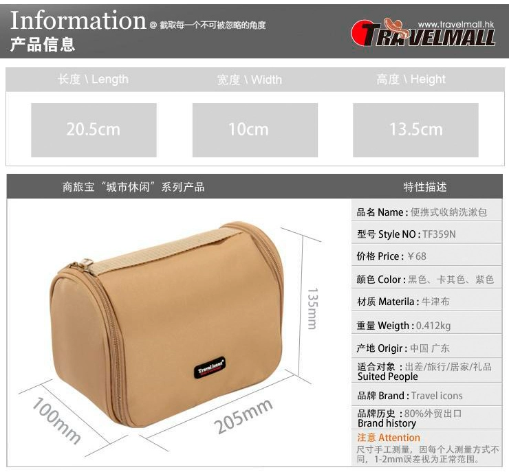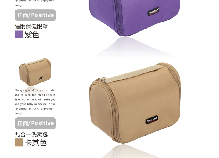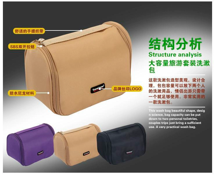 其特别之处如下: 洗漱包生产厂家,洗漱包供货商 1.1:洗漱包由三个完全独立的洗漱包组合而成。 1.2:此三个包可根据你的需要,完全DIY任意组合;也可合并或分开使 用:按我们设计师设计时的意图,其使用方法(包括但不限于如下): 1.21:洗漱包如果一个人出差旅行壹天,就带一个小包。 1.22:如果一个人出差旅行两天,就把左右两个小袋合起来使用。 1.23:如果一个人出差旅行三到五天,就带中间哪个大包。 1.24:如果是你一家人或是你小两口一起出去TRAVEL,就带上三个完全 洗漱包生产厂家,洗漱包供货商 组合好的大团包;又称为情吕组合包,可将一个小包放一些女人 专用的卫生纸等女性专用包,另一个小包可收纳一些男人用的专 用品包;而中间这个大包,就收纳一些你俩口的共用品。